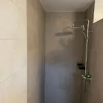 Seeidylle villa beschikt over een badkamer met een douche en een wasmachine.